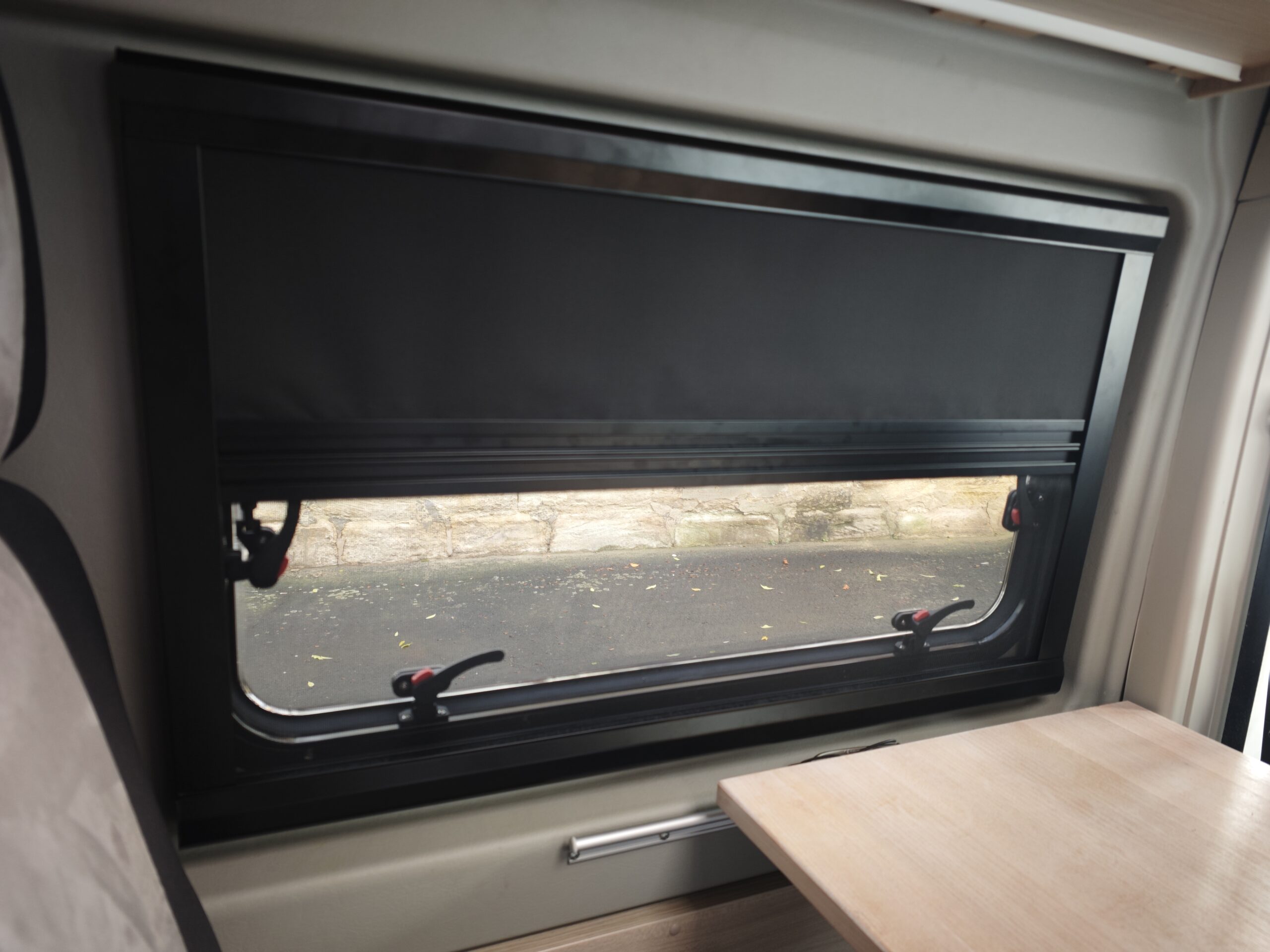 Diese neuen Fensterrollos wurden speziell für Wohnmobil- und Camperfenster mit Aluminiumrahmen entwickelt. Der Rahmen besteht aus hochwertigem, pulverbeschichtetem Aluminium und schließt so präzise, dass keine sichtbaren Spalten oder Leckstellen bleiben. Dadurch bleibt das Fahrzeug frei von Insekten – selbst bei langen Standzeiten oder nächtlicher Beleuchtung.